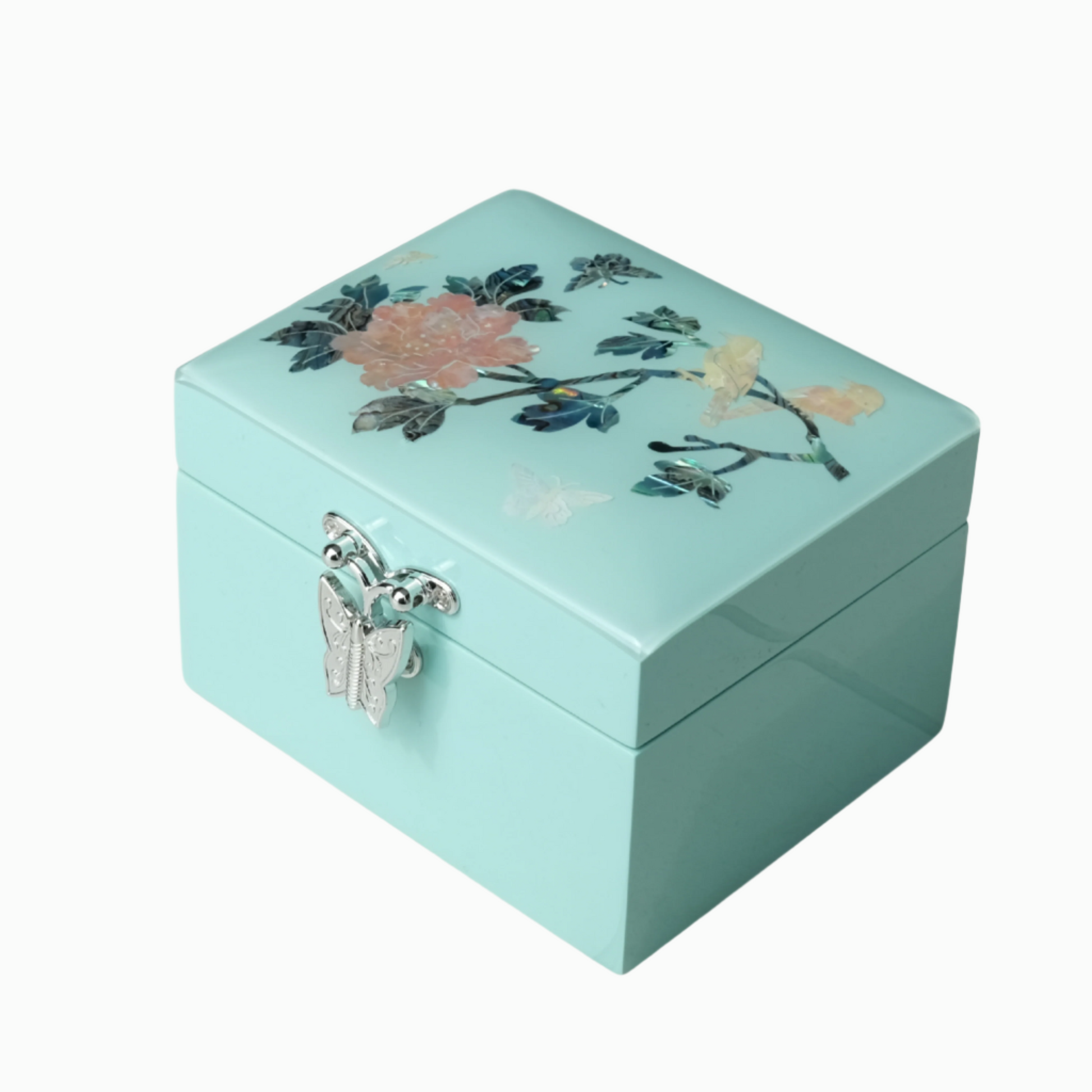 Gracing the lid is a graceful bird-and-flower motif, a timeless symbol of peace, vitality, and natural harmony. Carefully inlaid with genuine mother of pearl, the design glimmers softly with iridescent hues, catching the light with every shift — a delicate interplay of stillness and movement.