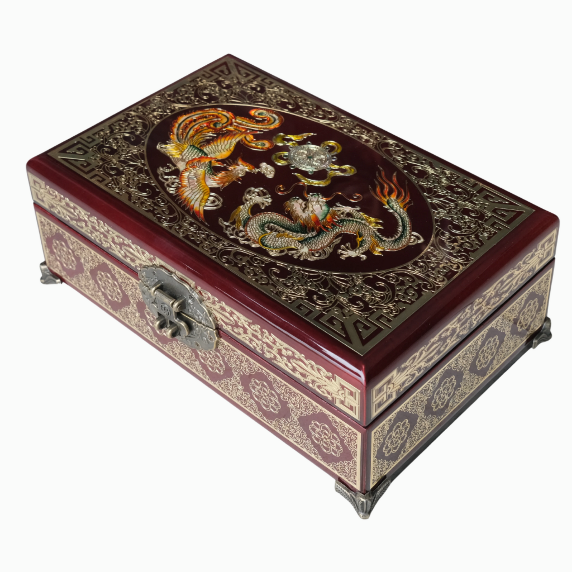 - Dragon and phoenix design inlaid with authentic mother of pearl