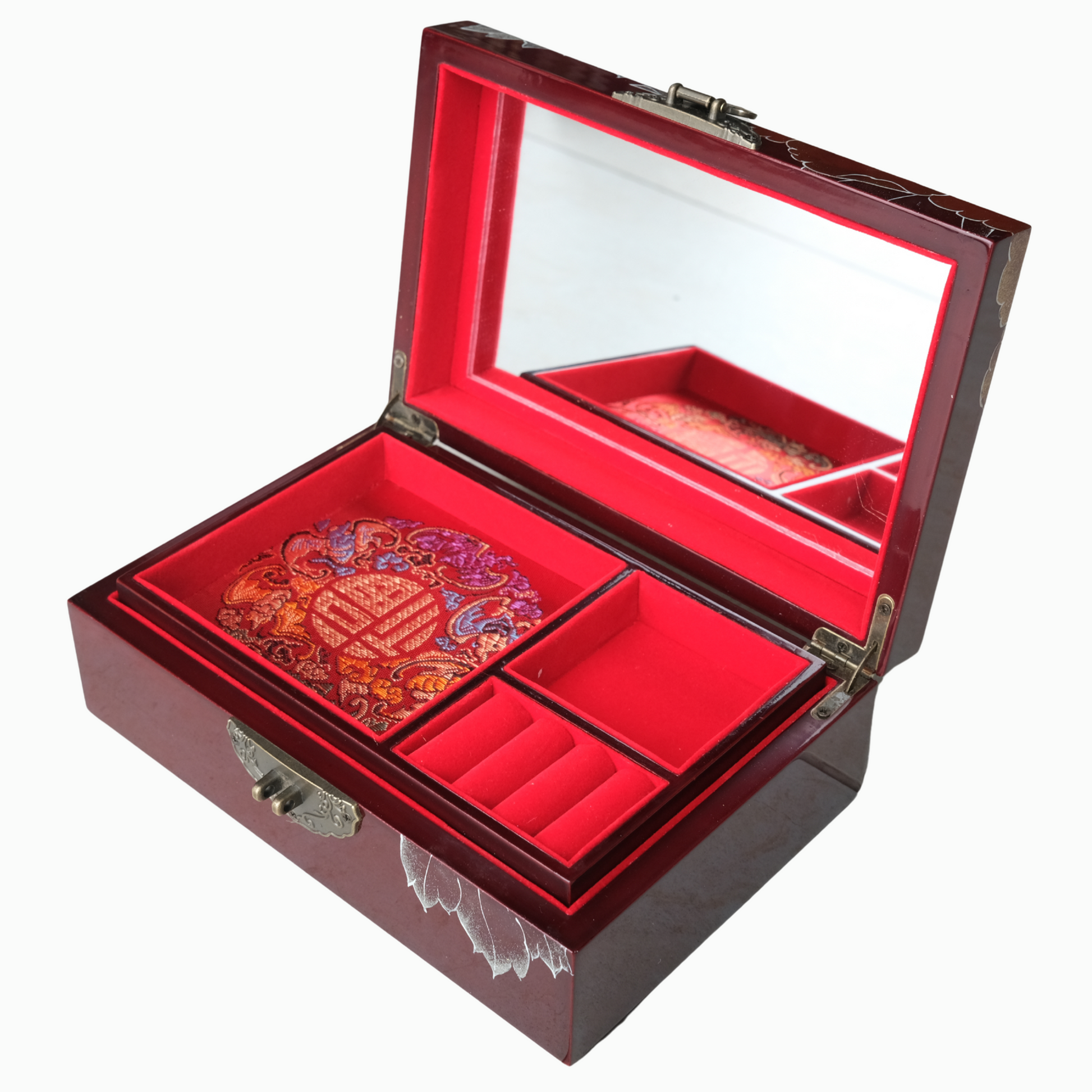 Adding to its cultural charm, the box is fitted with a traditional Chinese-style lock — a symbol of protection and secrecy — accompanied by a matching key. This classic mechanism adds not only security but also a beautiful touch of Eastern heritage.