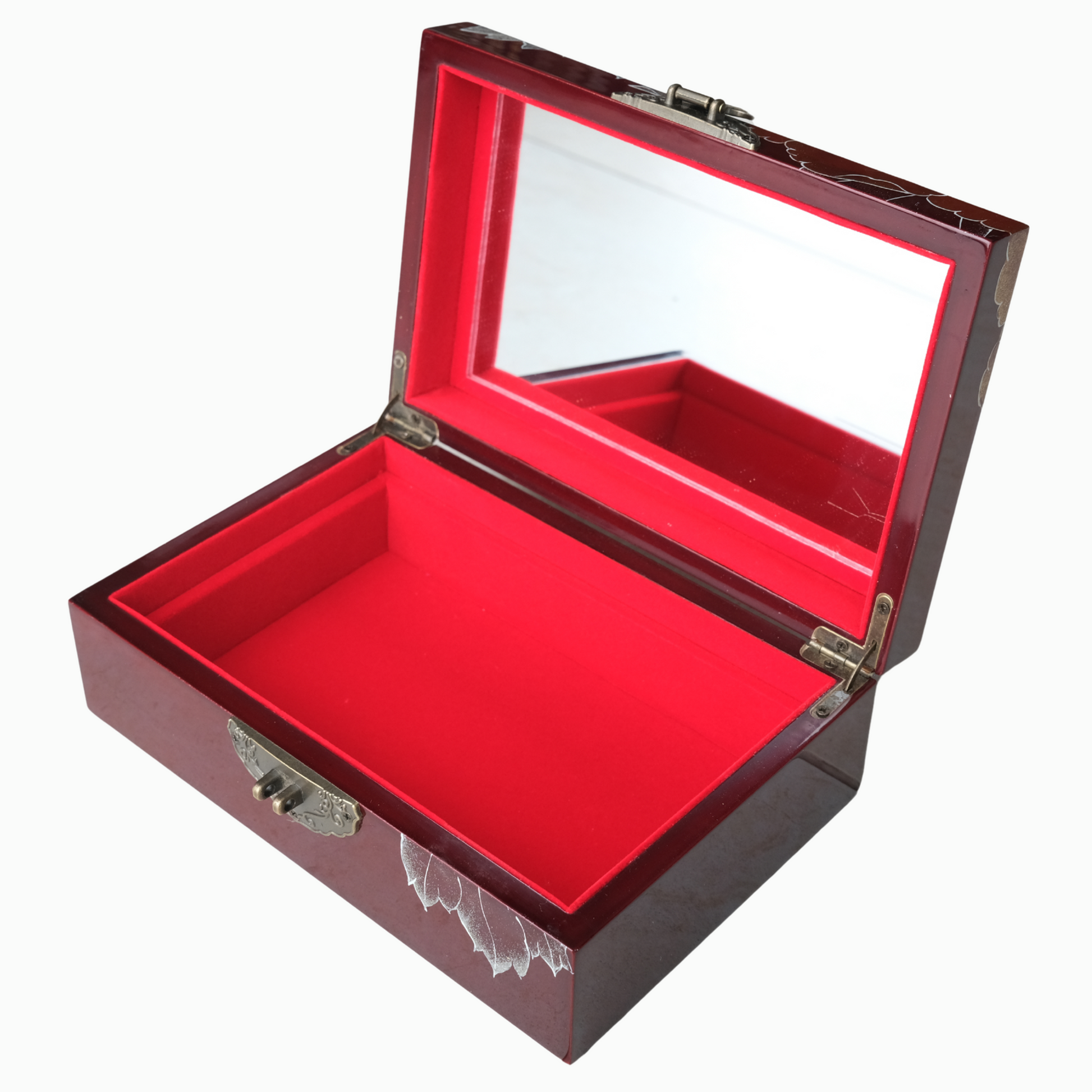 Handcrafted from genuine wood, the box is finished with a smooth, high-gloss lacquer that brings out the depth and richness of the natural material. Its surface is adorned with an intricate peony motif, symbolising prosperity, love, and honour in Chinese culture — making it a deeply meaningful gift or personal heirloom.